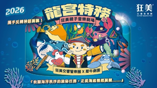 在蔚藍的東海之濱,龍宮長久守護著海洋的秩序;然而近來洋流失序、魚群騷動,龍宮也陷入前所未有的不安。動物王國再次向小勇者葛列佛與鸚鵡波莉發出求救訊號——究竟深海發生了什麼事?巧妙融合現場管樂與戲劇敘事,《龍宮特務》將帶領大小觀眾潛入深海,在層層推進的音符中,展開一場關於勇氣與守護的刺激冒險。跟上狂美的腳步,一起執行這場攸關海洋命運的行動!